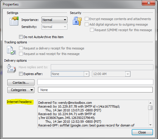 Note: Once you have gotten your email headers, please feel free to use our Email Header Analyzer.