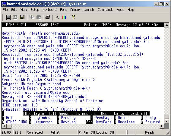 Your email client program will usually hide the full header or display only lines, such as From, To, Date, and Subject, see below for more information on pulling headers for your email client: